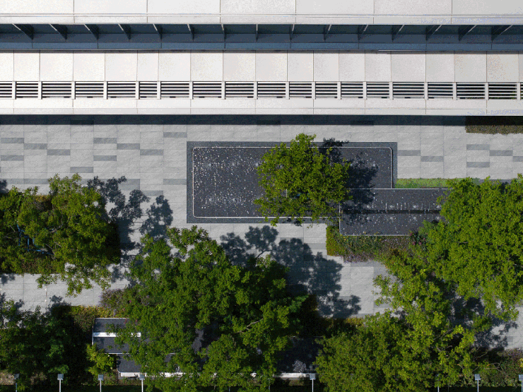 同时,社区内部景观打造了大面积的叠级水景,搭配普拉达绿大理石和浪淘沙石材,呈现整体空间的隐奢基调。