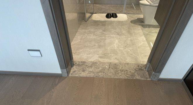 卫生间门套线下部增加了石墩,起到更好的防潮防霉作用,且避免长时间水汽侵蚀造成门套变形。