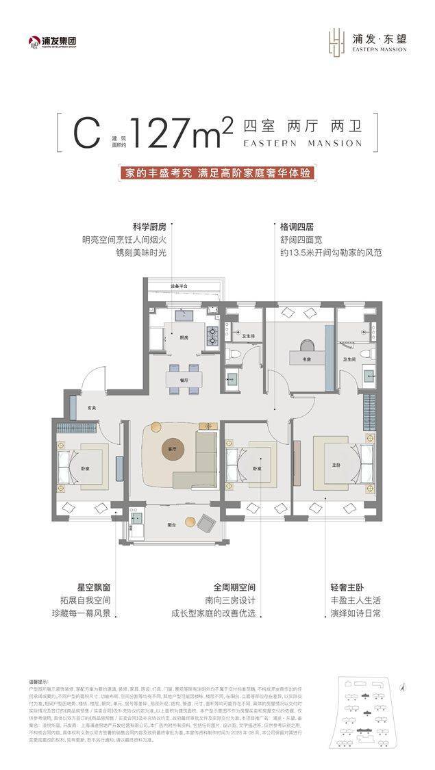 南向四开间,约13.5m奢适面宽,全飘窗设置,使得改善的面积段,竟拥有媲美大平层的舒适度